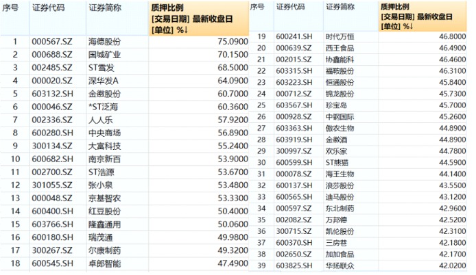 最后一个是股权质押的风险,关于这点,小二没有太多数据来说,很难量化。不过从质押率排名来看,A股只有147家公司质押率超过30%,补充保证金或者追加质押股本的空间还是比较大的。因此,小二觉得股权质押风险可能还比较遥远。下面是部分质押率过30%的公司(数据来自Wind):