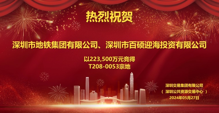 深圳公共资源交易中心5月27日公告显示,万科转让的深超总T208-0053宗地使用权由深圳地铁集团(以下简称“深圳地铁”)和深圳百硕迎海公司(以下简称“百硕迎海”)以挂牌价22.35亿元联合竞得。该地块土地使用期限30年,现剩余23年7个月,主要用途为商业办公及酒店,且要求自持70%。